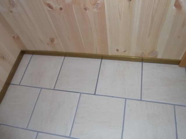 脱衣所、タイル部分の真鍮巾木を取り付けました。