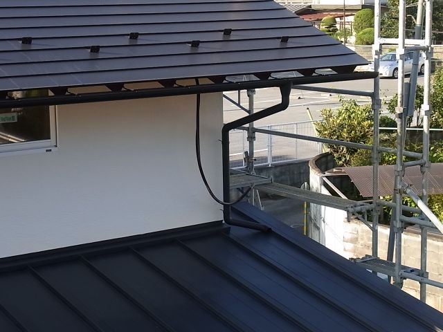 残りの平屋軒樋取付と各立樋を全て取付完了しました。