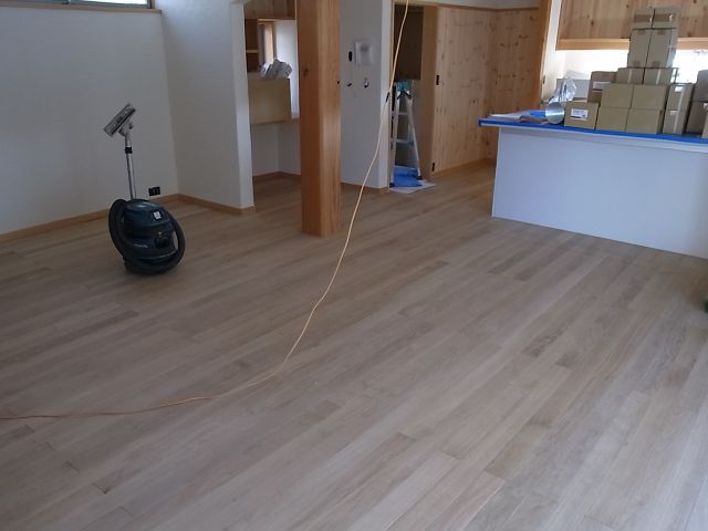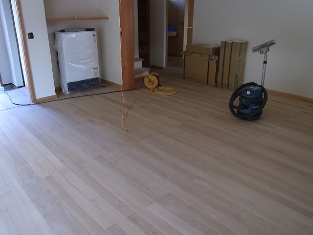 二階ホール一部と階段、一階のすべての養生が撤去されました。