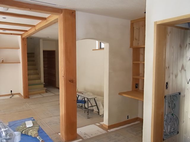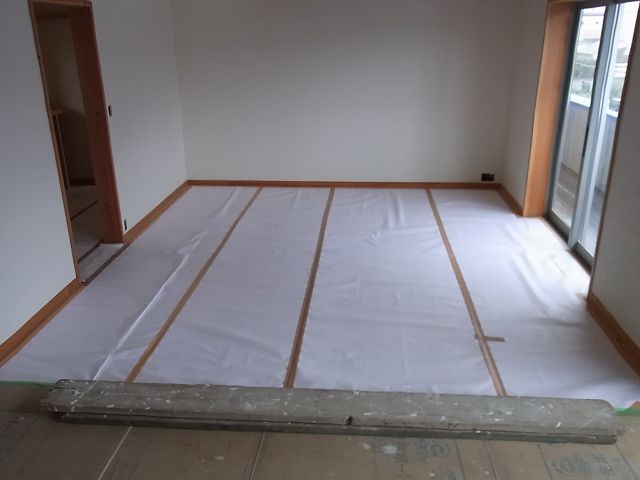 養生がしてあるが足跡や漆喰の後、養生の意味がない・・・。