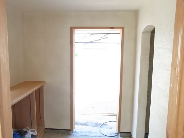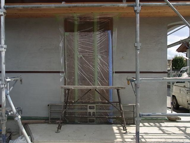 残りの一階部分全て塗られました。これで全て外壁漆喰塗が完了しました。