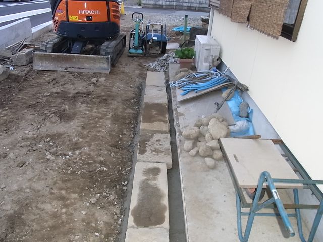 犬走りに石設置が行なわれました。