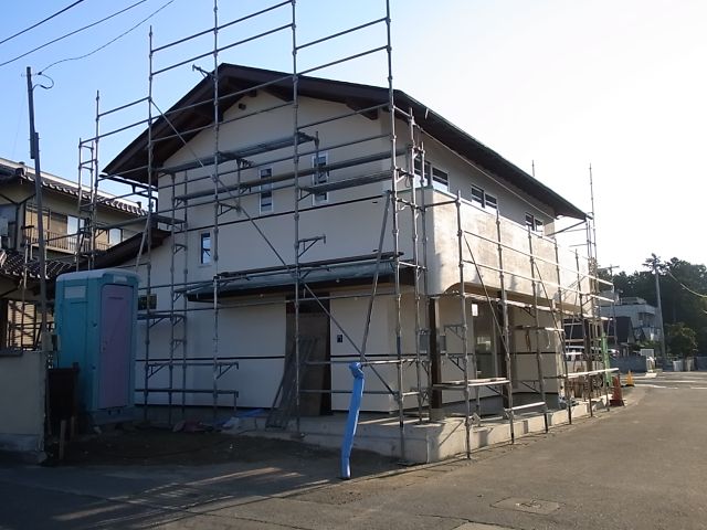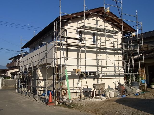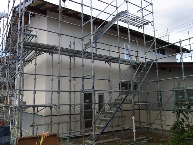 外部漆喰塗が始まりました。