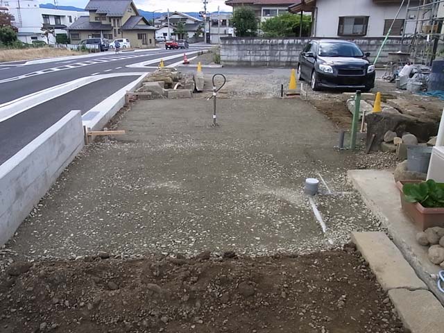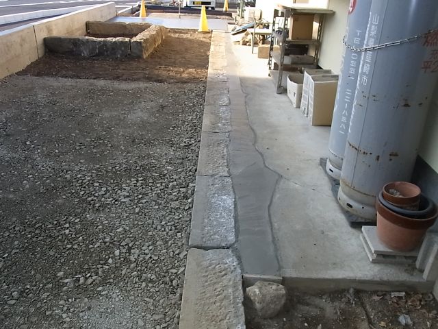 北側が土だとグチャグチャになってしまうので、砕石敷込・転圧をやって頂きました。